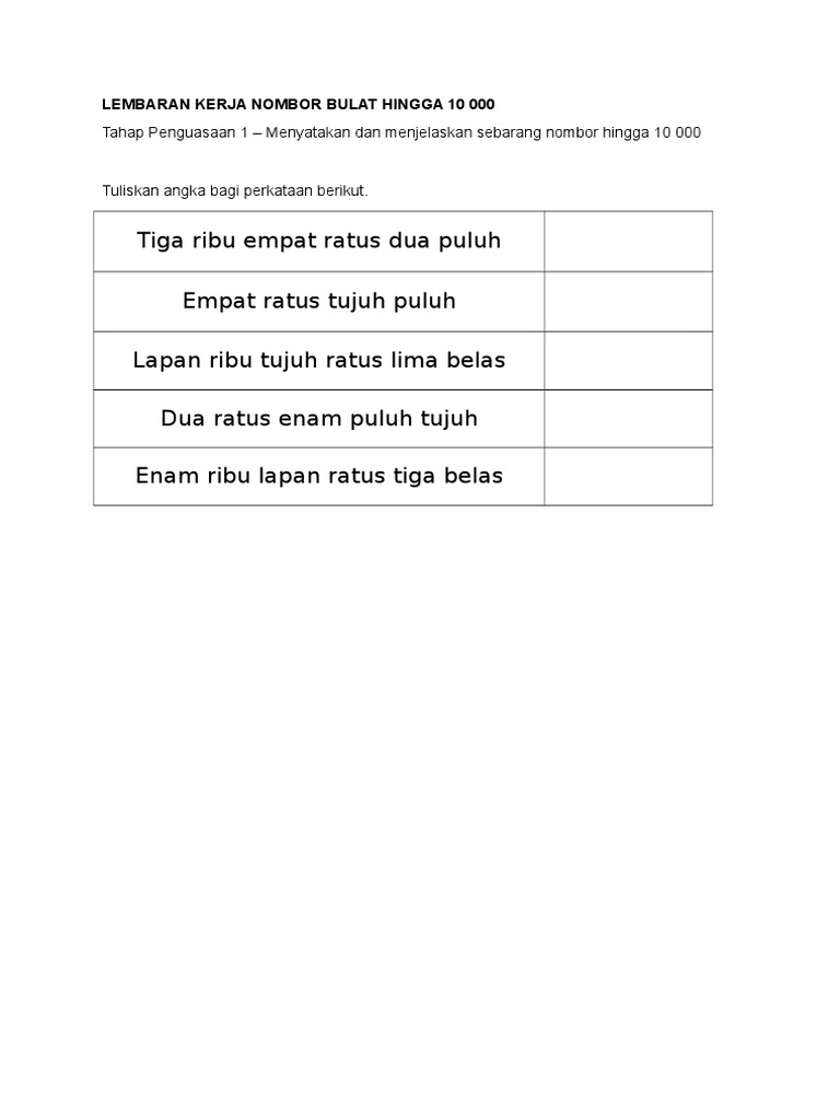 Soalan Matematik Tahun 3 Nombor Hingga 10000. Tuliskan nombor berikut dalam angka. Berikut adalah senarai topik yang boleh anda akses di dalam myquestions.